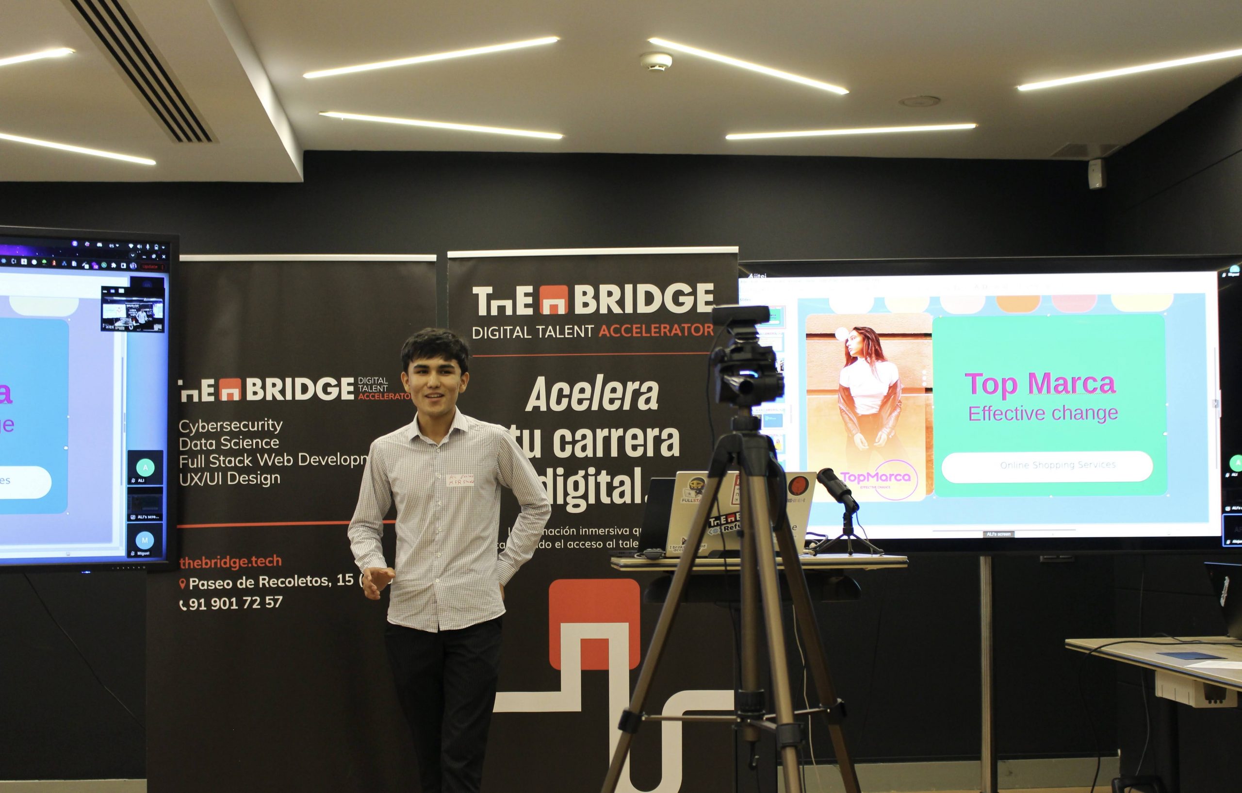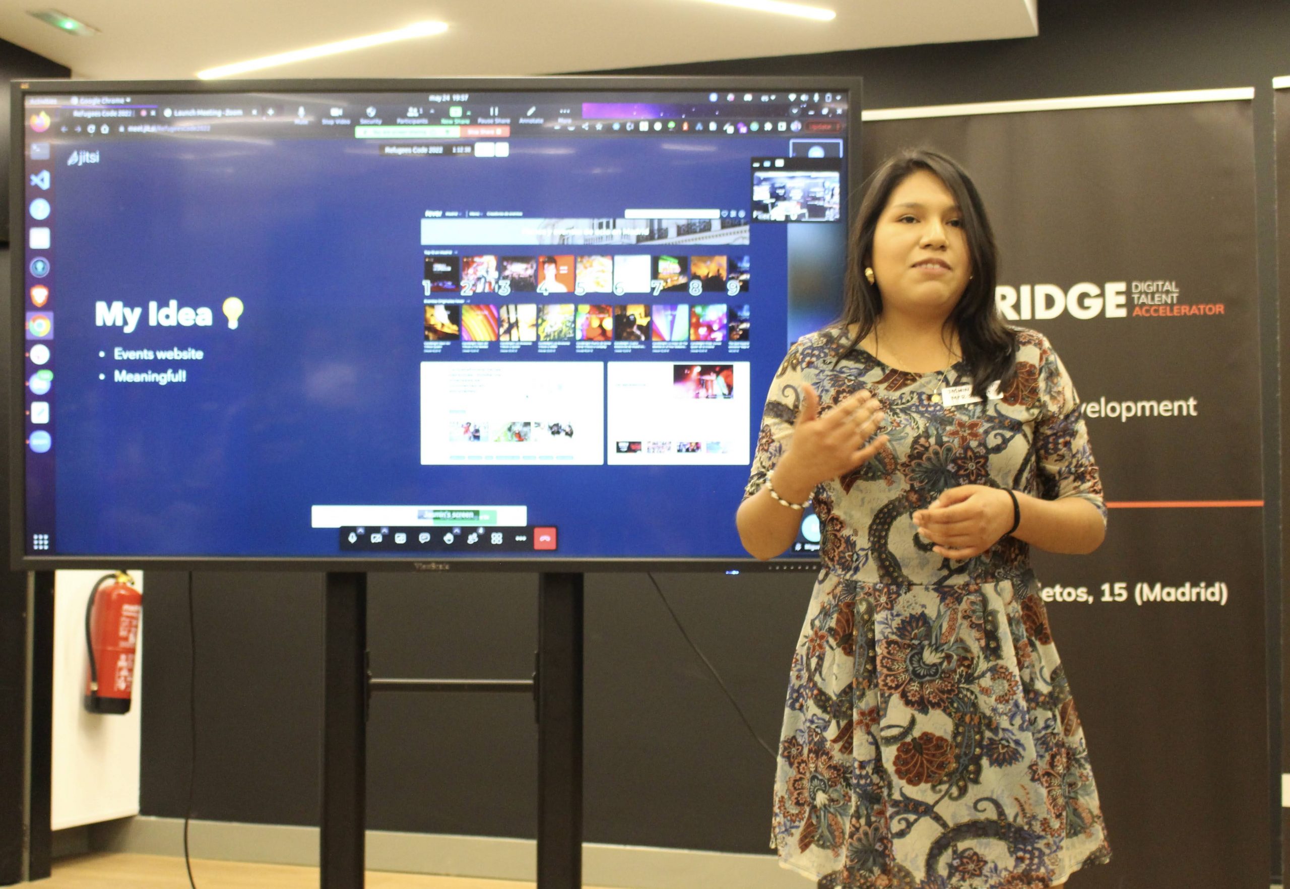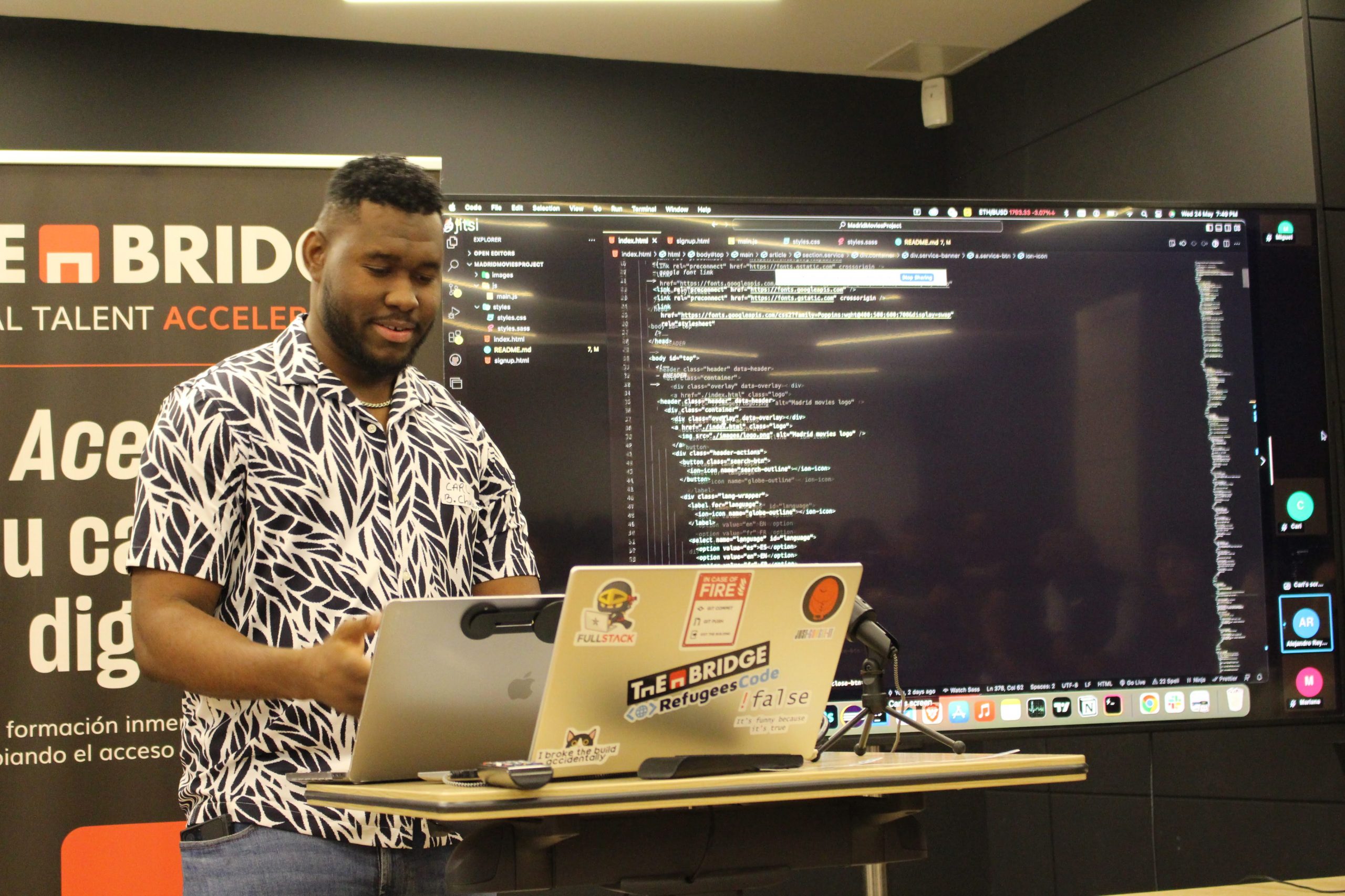 Madrid For Refugees – Refugees Code Demo Day tuvo lugar el 24 de mayo de 2023 en The Bridge Digital Talent Accelerator en Madrid, España. Refugees Code es una iniciativa de la ONG Madrid For Refugees y promueve la igualdad de oportunidades para el talento diverso en el sector tecnológico. Se trata de un programa de formación de 7 meses sobre Desarrollo Web Front-End para personas refugiadas, solicitantes de asilo y migrantes en riesgo de exclusión social. Nuestra clase de 2023 presentó sus proyectos finales y recibió sus diplomas de curso. ¡Nuestro increíble equipo de voluntarios, maestros, mentores, socios y amigos y amigas de la ONG y de la comunidad se unieron para ver las presentaciones y felicitar a los estudiantes!